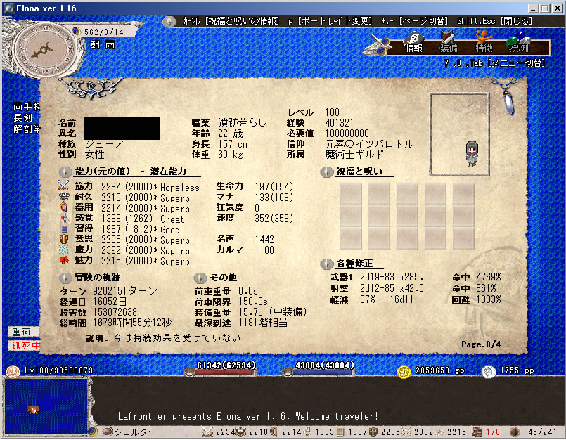 すくつ1132Fまで踏破し、魅力/交渉2000のマスターシーフを捕獲。