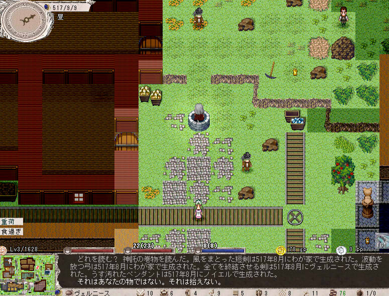 初回のエーテルの風をやり過ごしてからわが家を出立し、ヴェルニースで少女と再会。ここでピアニストなのを活かし少女に乗馬してポート、ダルフィ、ヨウィンと廻っ…てもろくな依頼がなかったため、ヴェルニースの井戸水で無理矢理神託の巻物を指定し取得。検証用データなんだから最初からこれでよかったですね。